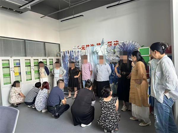 7月18日,在山東省臨沂市蘭山區(qū)人民法院“青橙計(jì)劃”開(kāi)設(shè)的家庭教育指導(dǎo)課上,家長(zhǎng)們被要求扮演蹲在地上的“接受者”,換位思考。受訪者供圖