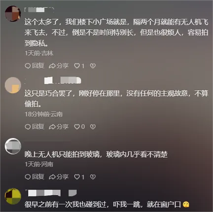 即使沒(méi)有拍到隱私畫(huà)面,無(wú)人機(jī)懸停窗外這一行為本身是否構(gòu)成侵權(quán)?多數(shù)網(wǎng)友認(rèn)為,家是最私密的場(chǎng)所,無(wú)人機(jī)貼近窗戶(hù)飛行打破了居民的心理安全防線,其行為本身就帶來(lái)了被窺視的恐懼感和心理不適。