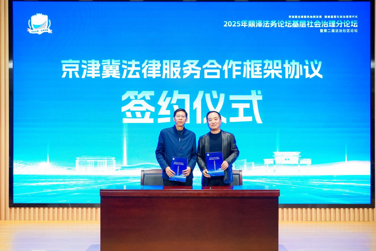 論壇在多項簽約與揭牌環(huán)節(jié)取得實質(zhì)性進展?!熬┙蚣椒煞?wù)合作框架協(xié)議”由北京市豐臺區(qū)、河北省張家口市、滄州市司法局代表共同簽約,標(biāo)志著三地法律服務(wù)協(xié)同進入機制化新階段;“京津冀法律服務(wù)基層社會協(xié)同治理合作框架協(xié)議”由雄縣政法委與邵公莊街道、新村街道共同簽署,推動法律服務(wù)進一步向社區(qū)延伸。