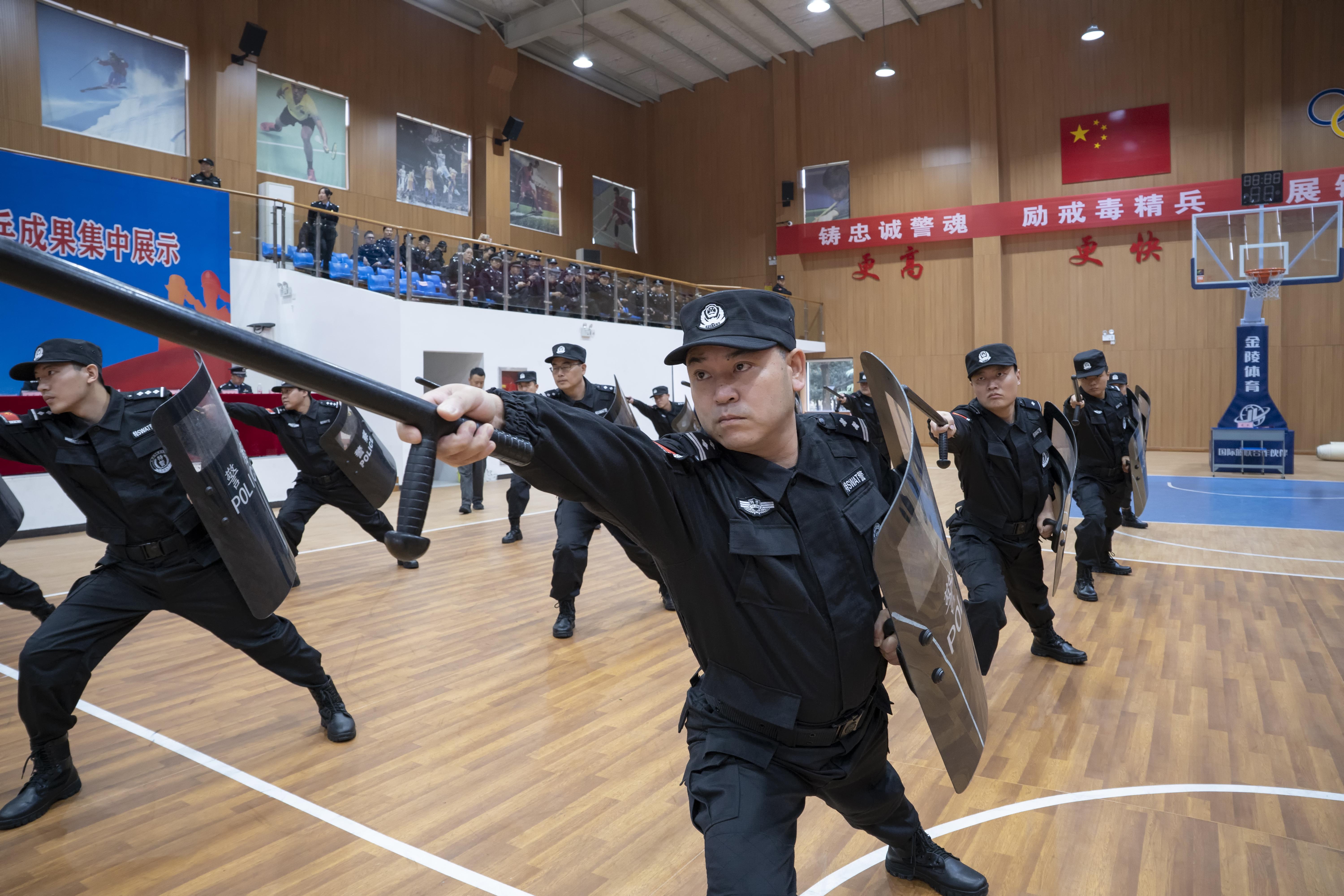 本次集中展示,設(shè)置單警隊(duì)列、擒敵拳、警棍盾牌操、防暴處突演練等4個(gè)科目。