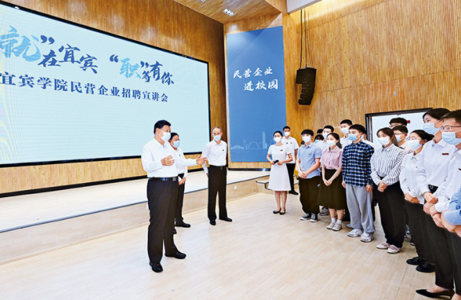 2022年6月8日,中共中央總書記、國家主席、中央軍委主席習(xí)近平在四川考察。這是8日下午,習(xí)近平在宜賓學(xué)院考察時,向正在參加企業(yè)招聘宣講會的教師、學(xué)生、企業(yè)負(fù)責(zé)人了解企業(yè)招工需求和畢業(yè)生簽約率等情況。 新華社記者 李學(xué)仁/攝