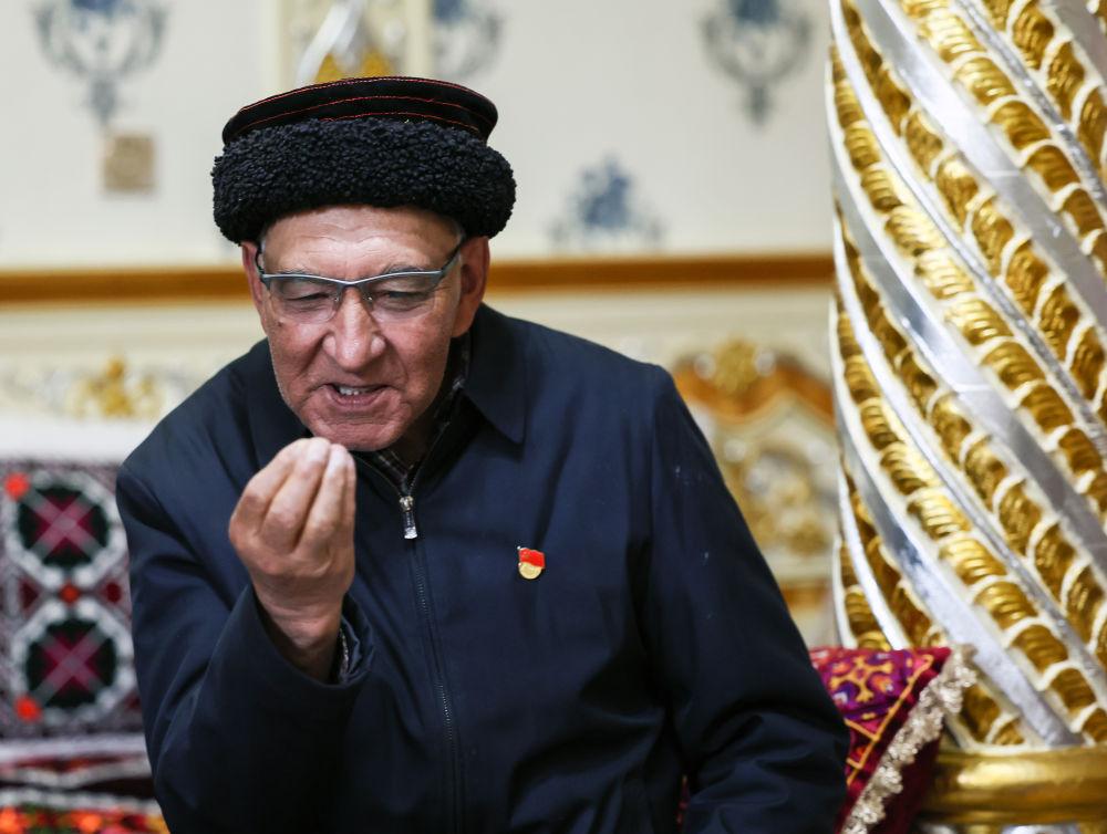 2023年9月4日,“時(shí)代楷?!崩R尼·巴依卡的父親巴依卡老人在新疆塔什庫(kù)爾干塔吉克自治縣的家中接受采訪。生活于帕米爾高原上的塔吉克族兒女,素來(lái)心中懷有“家是塔縣,國(guó)是中國(guó),放牧守邊是職責(zé)”的愛(ài)國(guó)守邊精神。巴依卡老人一家三代70年接續(xù)守邊護(hù)邊,愛(ài)國(guó)奉獻(xiàn)的壯舉感動(dòng)了無(wú)數(shù)國(guó)人。“邊境線(xiàn)是中國(guó)的邊境線(xiàn),紅其拉甫是中國(guó)56個(gè)民族的紅其拉甫,我們的56個(gè)民族就要像石榴籽一樣緊緊抱在一起?!卑鸵揽ɡ先苏f(shuō)。