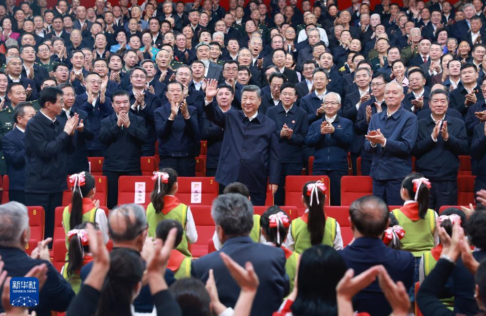 王滬寧、蔡奇、李干杰、何立峰、王小洪、雪克來提·扎克爾、諶貽琴、王東峰和劉振立,在新疆工作過的老同志,以及中央和國家機關(guān)有關(guān)部門負責(zé)同志、中央代表團全體成員一同觀看演出。