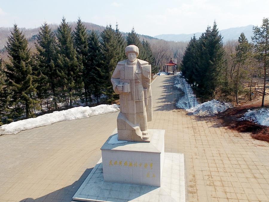 矗立在吉林省靖宇縣楊靖宇將軍殉國(guó)地的楊靖宇雕像(2017年3月22日攝)。新華社記者 曾濤 攝