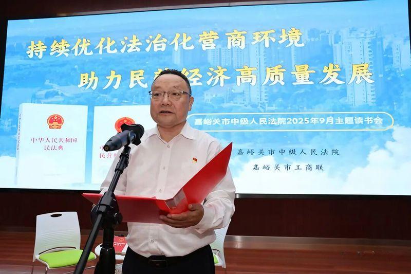近日,甘肅省嘉峪關(guān)市中級(jí)人民法院聯(lián)合市工商聯(lián)共同舉辦“持續(xù)優(yōu)化法治化營(yíng)商環(huán)境 助力民營(yíng)經(jīng)濟(jì)高質(zhì)量發(fā)展”主題讀書(shū)會(huì)。市中級(jí)人民法院黨組書(shū)記、代院長(zhǎng)范勰出席活動(dòng)并致辭,市工商聯(lián)黨組書(shū)記、常務(wù)副主席吳壽先作點(diǎn)評(píng)發(fā)言。民營(yíng)企業(yè)家張毅、王廣里、王貴龍、邱學(xué)鋒、劉忠孝、冉平全、李國(guó)紅、馬曉飛、朱紀(jì)才、劉成庭受邀參加讀書(shū)會(huì)。