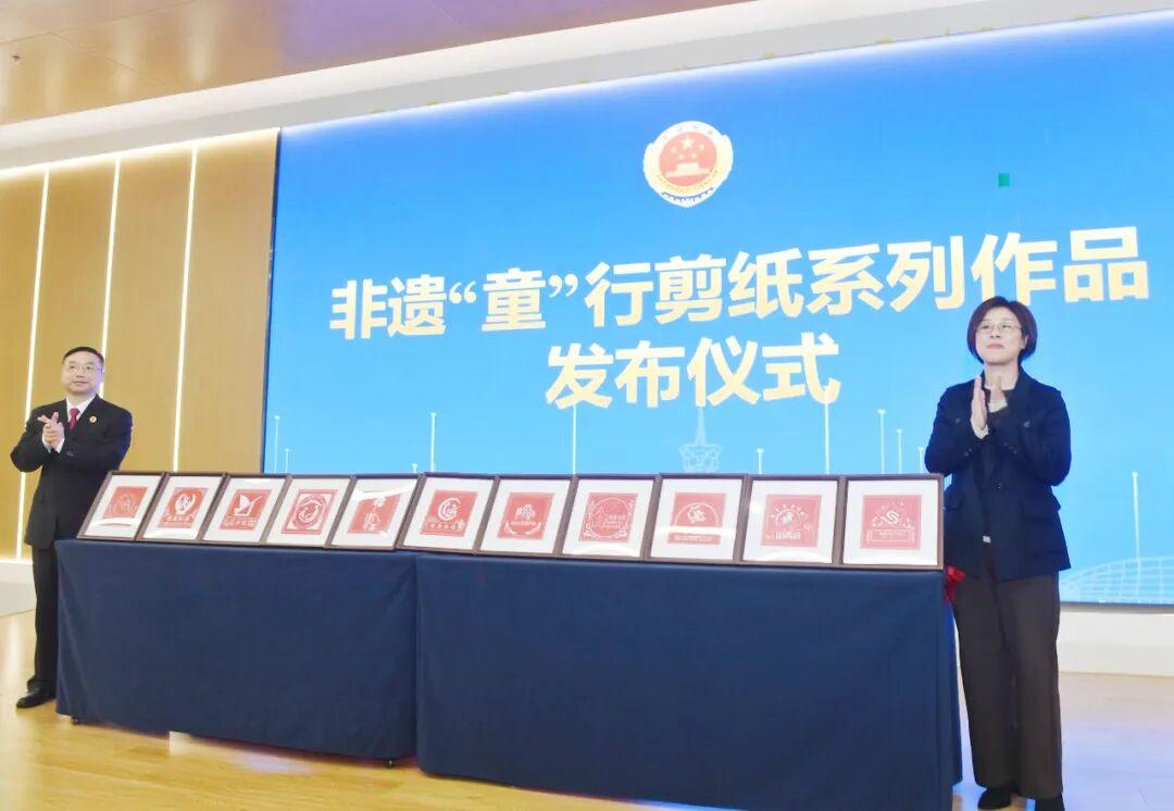 在“油麻地小學(xué)教室”,孩子們正圍繞在非遺代表性傳承人王柏林老師身邊,全神貫注于手中的紅紙與剪刀。隨著巧手翻飛,象征守護(hù)的檢察徽章、攜手普法的童趣形象等漸次浮現(xiàn)?!凹舻恫荒茉骄€,正如行為不能逾越法律底線。”王柏林一邊創(chuàng)作,一邊講解?!凹簟比ミ`法犯罪行為的邊角,“刻”下規(guī)則意識的輪廓,這一刻,手藝傳承與法治浸潤悄然交織。現(xiàn)場,嘉賓們還參觀了法治教育實踐點與兒童法治繪畫作品展。孩子們筆下的“檢察官超人”“法律保護(hù)我家”等畫作,以童真視角賦予法治溫暖色彩。