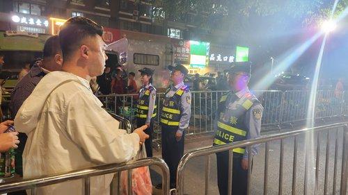 足球比賽的安保不僅是賽場內(nèi)的安保,尤其是散場時(shí)體育場周邊快速疏散,周邊地鐵口疏散也是重中之重。為此,專班精心制定了分時(shí)段、分區(qū)域的疏散預(yù)案,利用監(jiān)控系統(tǒng)實(shí)時(shí)追蹤人流密度,并通過便攜式通訊設(shè)備協(xié)調(diào)警力部署。在散場高峰時(shí)段,進(jìn)行警力調(diào)整,把主要警力投入到體育場南北兩個(gè)出口、重工街沿線及地鐵口關(guān)鍵節(jié)點(diǎn),手持交通指揮棒指揮觀眾有序分流,確保疏散過程高效、安全。此外,專班與地鐵運(yùn)營部門聯(lián)動,在入口通道設(shè)置臨時(shí)緩沖區(qū),利用信息化平臺共享實(shí)時(shí)數(shù)據(jù),快速響應(yīng)擁堵或突發(fā)狀況,有效避免了人群聚集風(fēng)險(xiǎn),保障了整體安保的無縫銜接。
