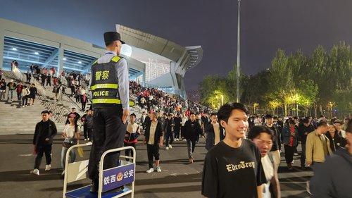 沈陽鐵西民警在鐵西體育場周邊疏散觀賽人員。