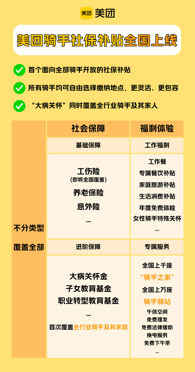 美團已初步建成覆蓋全部騎手的多層次福利保障網(wǎng)