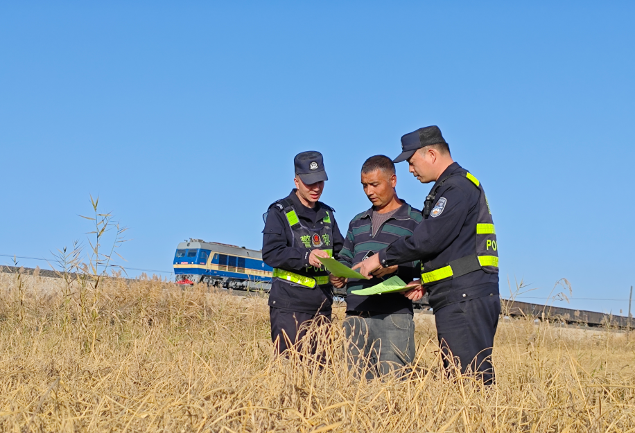 正是秋收時(shí)節(jié),10月27日,烏魯木齊鐵路公安局喀什公安處墨玉站派出所組建“秋收普法巡邏隊(duì)”,穿梭在鐵路沿線稻田間,幫助農(nóng)戶收稻米、裝稻桿,以拉家常方式講解鐵路安全知識,積極營造“平安鐵路,人人有責(zé)”的良好氛圍。