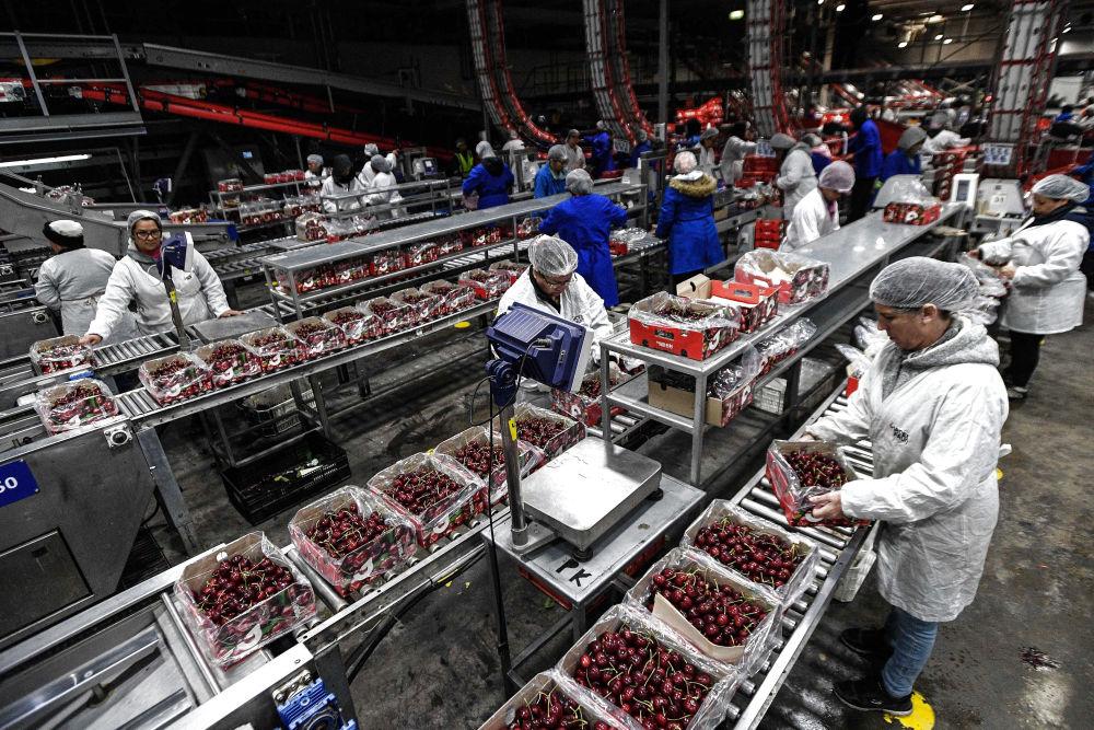 2024年12月13日,工作人員在智利莫斯塔薩爾的一家吉制公司工廠處理車厘子。中國已連續(xù)7年成為智利車厘子的最大出口國,超過90%的智利車厘子銷往中國。越來越多的智利特色農(nóng)產(chǎn)品在不斷豐富中國百姓的餐桌。