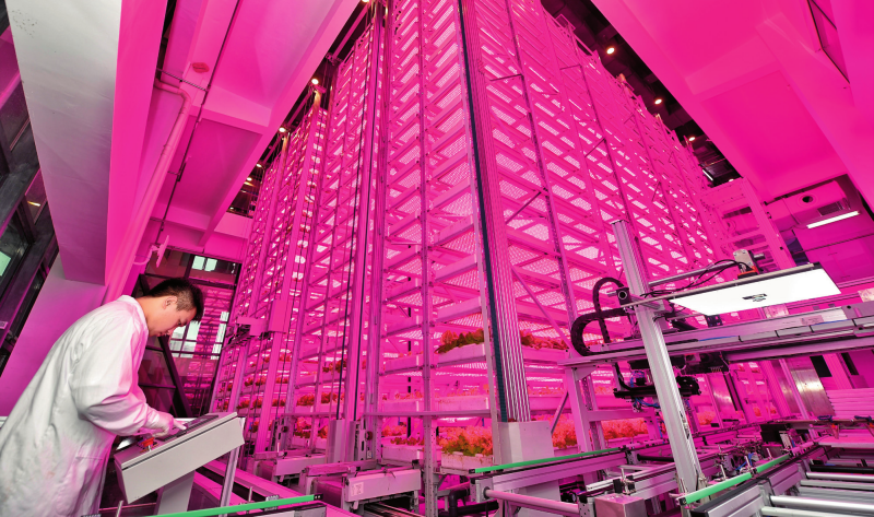 在位于四川天府新區(qū)的中國(guó)農(nóng)業(yè)科學(xué)院都市農(nóng)業(yè)研究所超高層無(wú)人化垂直植物工廠內(nèi),科技人員在調(diào)試軟件(2024年10月16日攝) 劉坤攝/本刊