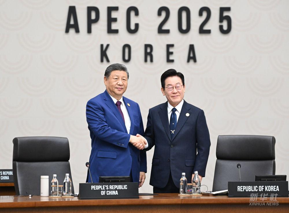 這是習(xí)近平同韓國總統(tǒng)李在明在交接環(huán)節(jié)上握手。