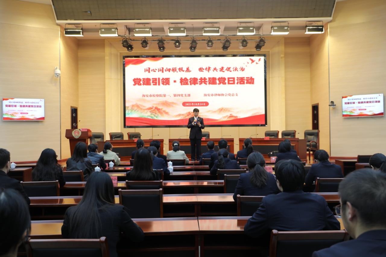 近日,江蘇省海安市人民檢察院第一、第四黨支部聯(lián)合海安市律師協(xié)會黨總支開展“同心同向強(qiáng)根基 檢律共建促法治”主題黨日活動,律師代表、檢察干警代表等60余人參加活動。