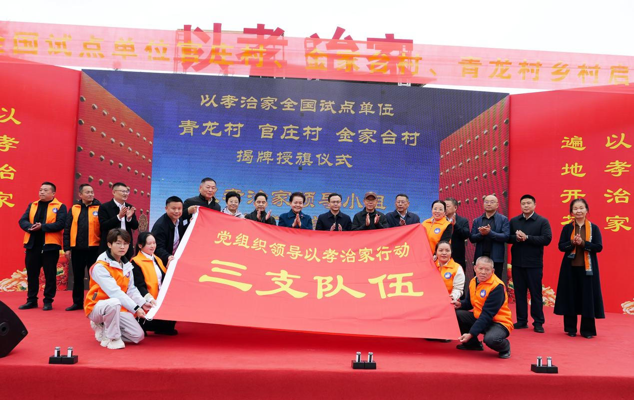 以孝治家領(lǐng)導(dǎo)小組為三個(gè)試點(diǎn)單位授旗