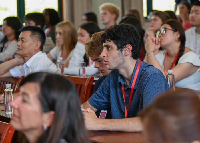 7月28日,在湖北省黃岡市紅安縣,美國飛虎隊(duì)夏令營代表團(tuán)成員觀看紀(jì)錄片《飛虎情緣》。
