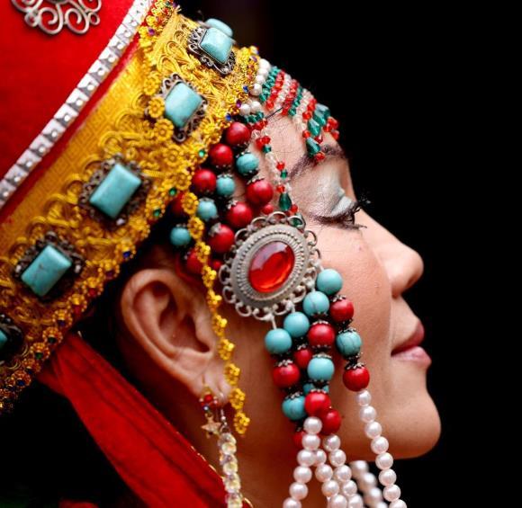 10月5日,一名身著蒙古族服飾的演員準(zhǔn)備在英國倫敦舉行的中秋節(jié)慶?;顒由媳硌?。新華社記者 李穎 攝