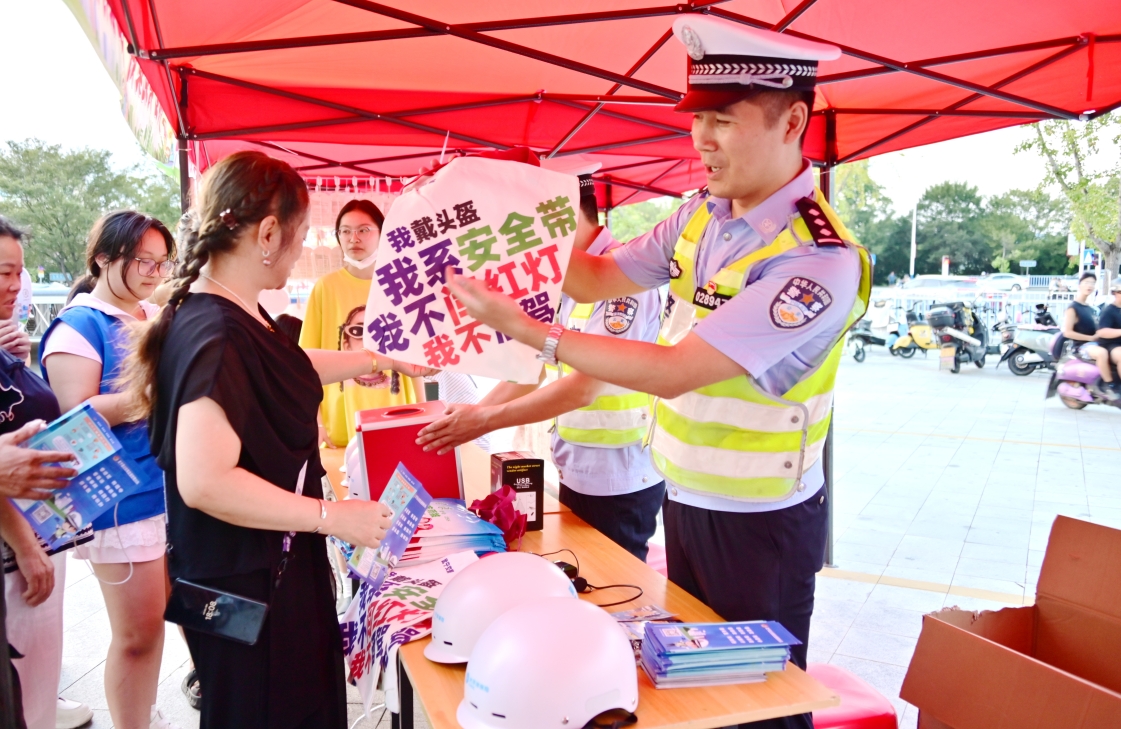 8月28日,江西省武寧縣公安局交管大隊(duì)組織民警在武寧聯(lián)盛快樂城夜市廣場擺攤設(shè)點(diǎn),通過以案釋法、現(xiàn)場答疑等方式,向群眾宣傳交通安全知識,并贈送頭盔、雨衣和圍裙等小禮品,吸引眾多市民參與。