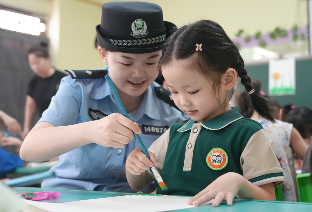 圖為民警在幼兒園開展“尊師重教 與法同行”主題活動。