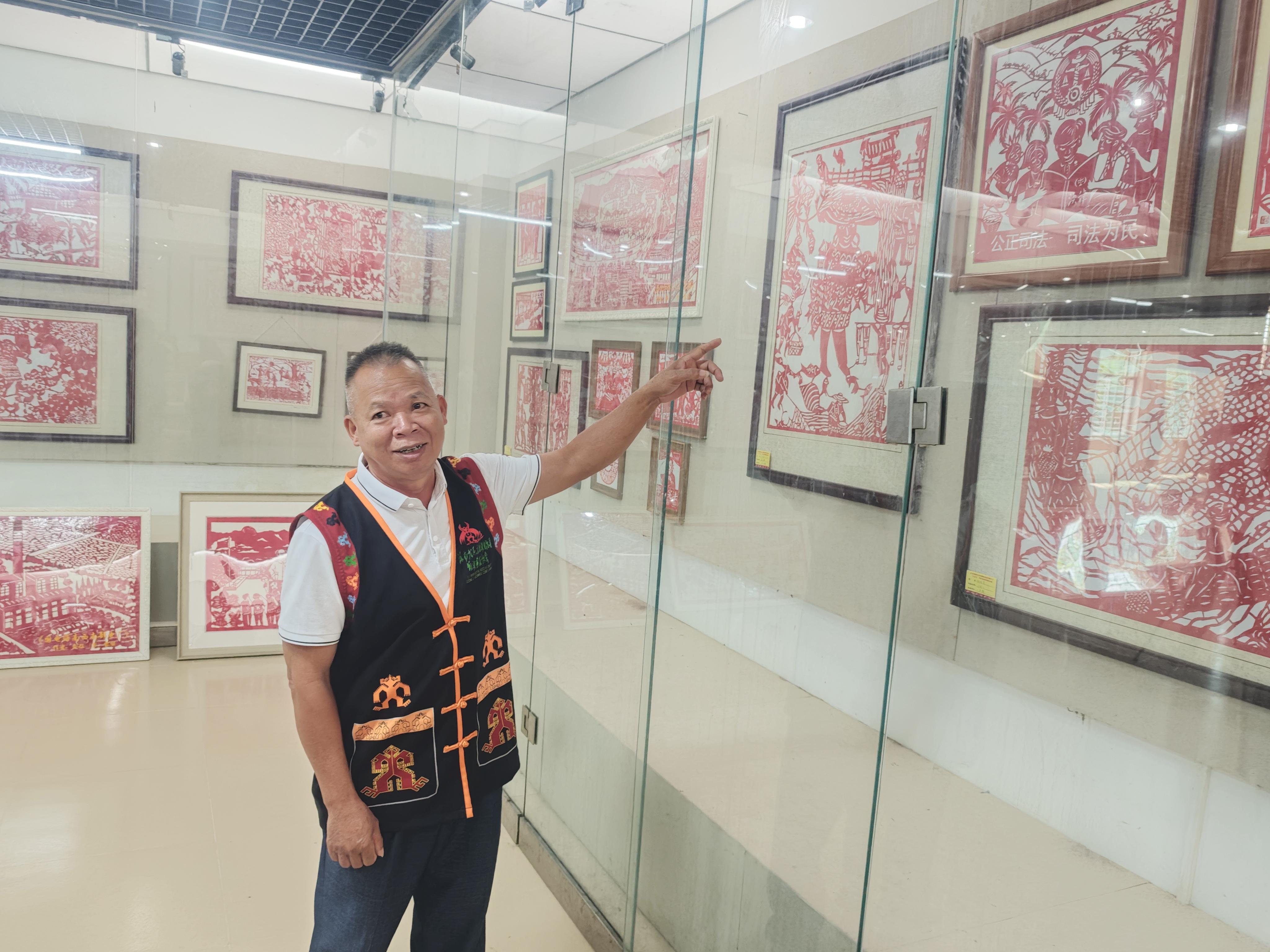 “剪紙以前大多是剪一些吉祥圖案、民族傳說。在縣司法局的指導(dǎo)下,我開始嘗試將法治元素融入剪紙藝術(shù),創(chuàng)作大量的法治題材剪紙作品。”大安剪紙技藝省級傳承人林文生表示,他積極參與法治剪紙進校園、進鄉(xiāng)村等普法宣傳活動,讓學(xué)生和黎族村民在欣賞精美剪紙的同時,接受法治文化的熏陶。