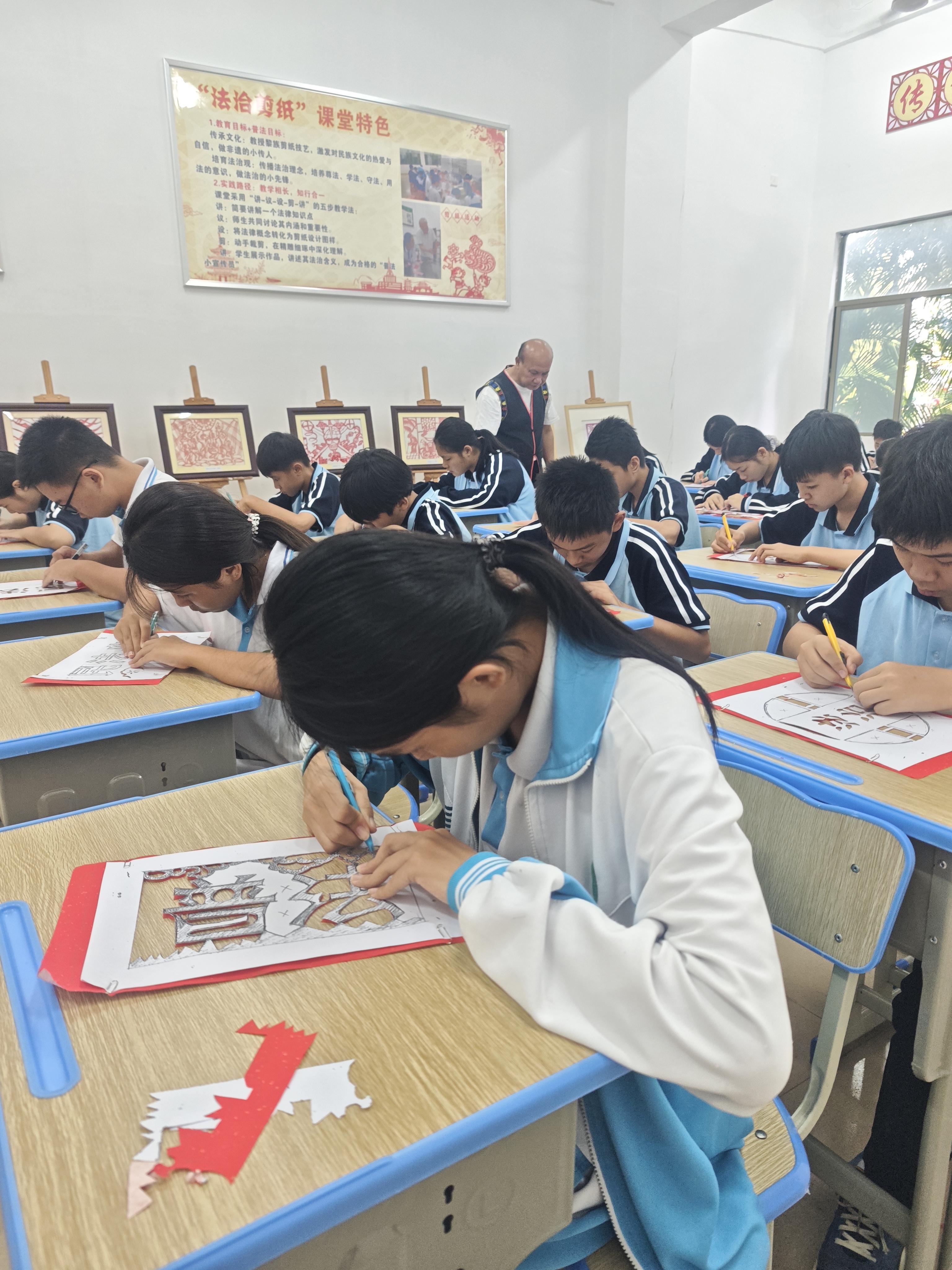 “課堂上,我不僅講授法律故事、法律知識,還引導(dǎo)學(xué)生將憲法、民法典等融入剪紙創(chuàng)作。學(xué)生們通過折紙、劃線、雕刻、裁剪,一步步將法治觀念轉(zhuǎn)化為一幅幅生動具象的剪紙作品?!睒窎|中學(xué)剪紙課指導(dǎo)老師吉雄告訴記者。
