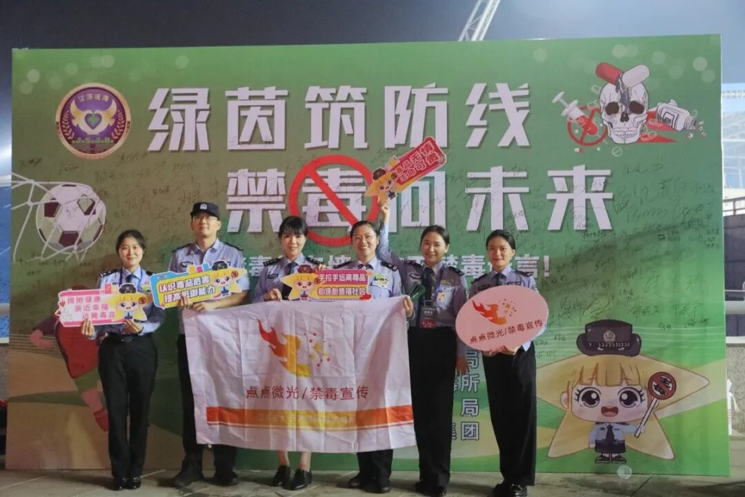 賽前球迷互動(dòng)區(qū)里,江蘇省女子強(qiáng)制隔離戒毒所“點(diǎn)點(diǎn)微光”禁毒宣傳團(tuán)隊(duì)積極行動(dòng),聯(lián)合鎮(zhèn)江市體育局、鎮(zhèn)江市文化廣電和旅游局、鎮(zhèn)江市文化廣電產(chǎn)業(yè)集團(tuán)等單位,為鎮(zhèn)江、無(wú)錫球迷送上禁毒知識(shí)和禁毒文創(chuàng)。“點(diǎn)點(diǎn)微光”禁毒宣傳吉祥物“星星”也驚喜現(xiàn)身,與球迷代表在禁毒宣誓墻上寫(xiě)下禁毒承諾,共同喊出“鎮(zhèn)江無(wú)錫,共筑防線”的青春無(wú)毒誓言。