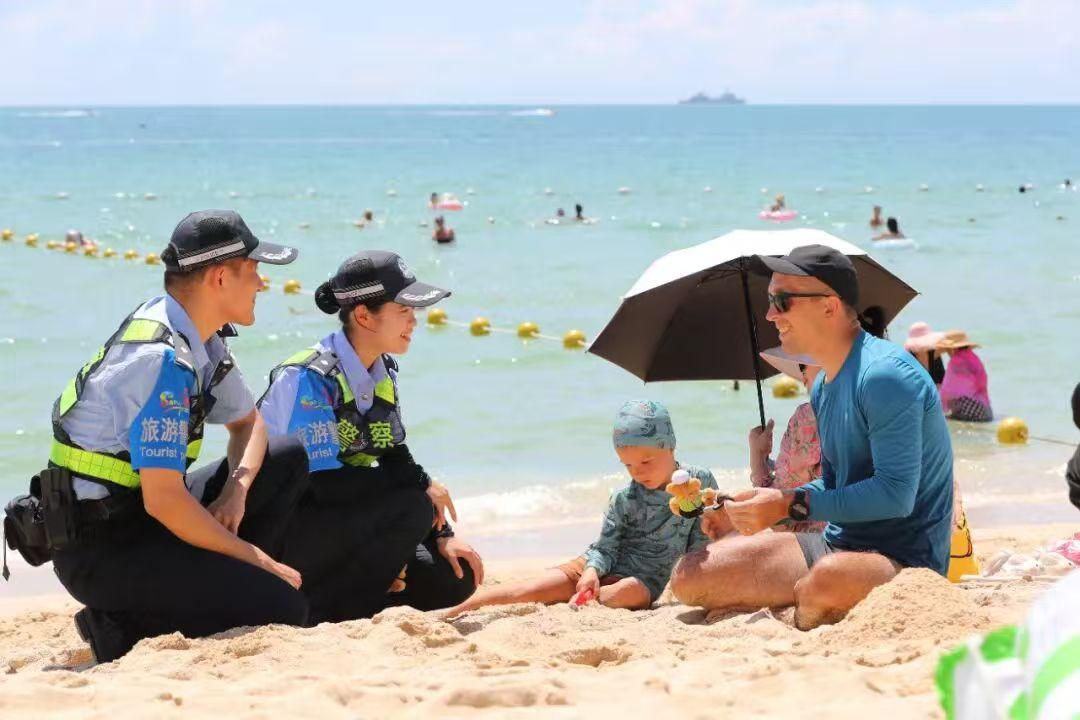 “我們非常喜歡三亞,這里非常舒適、安全,我去了很多地方,服務都很好”。10月4日上午,大東海景區(qū),碧海藍天、椰林沙灘,美不勝收,俄羅斯籍游客正帶著孩子在大東海沙灘上玩耍,當旅游警察陳玨用俄語向其宣傳旅游安全知識時,這位外籍游客高興地說道。
