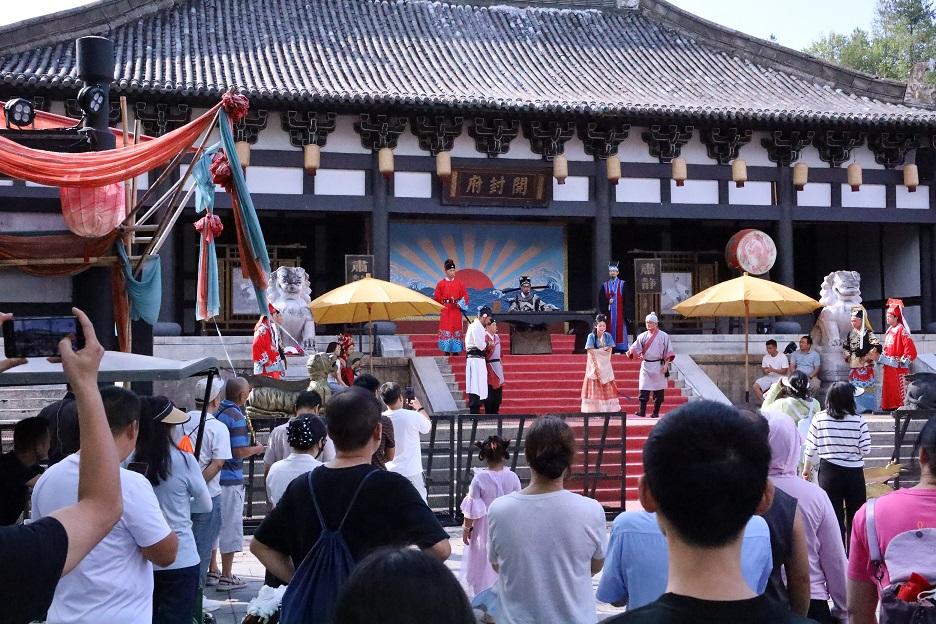 據(jù)悉,“包公審案”普法演藝秀自10月1日上線以來,節(jié)假日每天8場、平時每天2場在橫店影視城清明上河圖景區(qū)開演,每場時長15分鐘,累計觸達游客上萬人次。