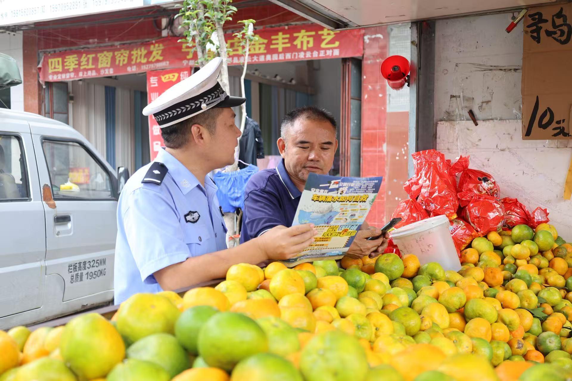 圖為近日,民警來(lái)到黃石鎮(zhèn)向群眾宣傳交通安全知識(shí)。