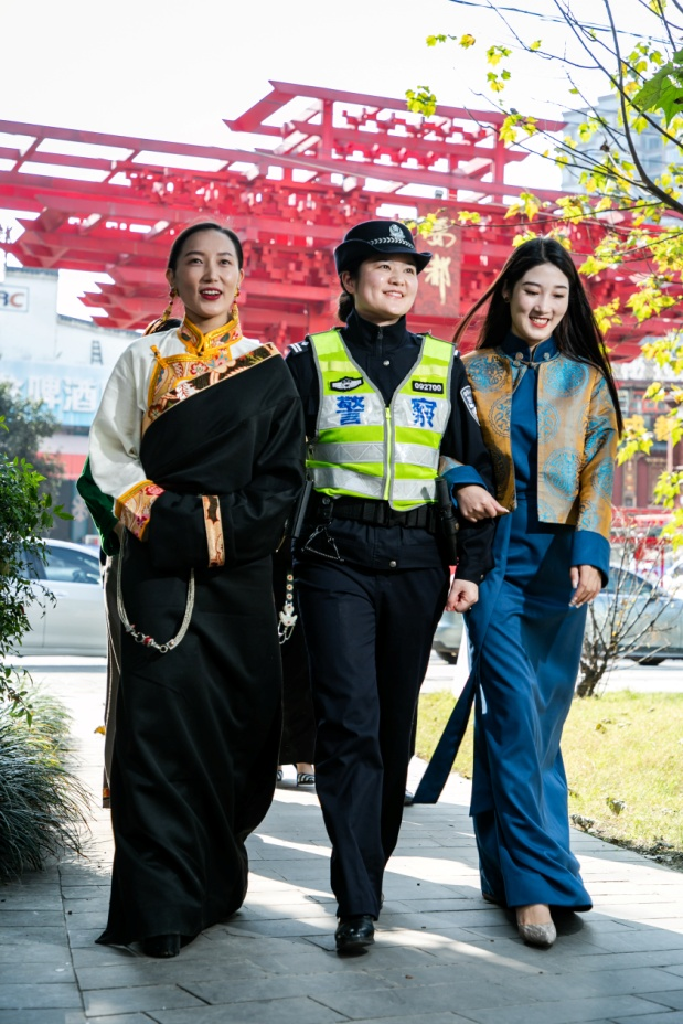 現(xiàn)在,“漿洗杰巴”義警隊(duì)已經(jīng)發(fā)展到16人,除了藏族群眾,還有街道社區(qū)的藏族干部、大學(xué)藏語老師等。正是因?yàn)橛辛嗣窬谛?、藏族群眾融城,才有三融工作法的最后一步——融合,警民攜手共建共治,繪就美麗“楓”景。