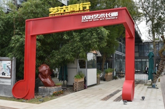 川音藝谷法治文化體驗(yàn)基地位于新都區(qū)石板灘街道韓娥社區(qū),基地以做實(shí)普法體驗(yàn)場景、做強(qiáng)法治藝創(chuàng)產(chǎn)業(yè)、做精藝創(chuàng)法律服務(wù)、做優(yōu)園區(qū)法治化營商環(huán)境為抓手,積極探索“守法普法”的新模式。基地門頭采用二八音樂符號藝術(shù)變型設(shè)計(jì),突出普法抓住“關(guān)鍵少數(shù)”。法治雕塑廣場采用經(jīng)典法治故事雕刻作品,展現(xiàn)民法典基本原則理念。法治長廊采用法治藝術(shù)場景引導(dǎo)+典型案例釋法拓展+交互教育沉浸體驗(yàn)的方式展現(xiàn)熊博士的法治人生。同時(shí),使用四川獨(dú)有物種熊貓,創(chuàng)作形象的熊貓法字LOGO;借鑒新都漢朝說唱俑,創(chuàng)作說法熊貓吉祥物。與川音藝谷項(xiàng)目的運(yùn)營方建立合作機(jī)制,舉辦新都區(qū)法治文化作品展覽、評選活動(dòng),鼓勵(lì)創(chuàng)作具有法治內(nèi)涵的雕塑、書法、攝影、音樂等藝術(shù)產(chǎn)品作品。此外,基地布局川音藝谷法律之家,發(fā)揮社區(qū)法律顧問服務(wù)團(tuán)隊(duì)的作用,積極為項(xiàng)目建設(shè)提供合同合法性審查等法律服務(wù),為川音藝谷文創(chuàng)園建設(shè)保駕護(hù)航?;剡€設(shè)立川音藝谷知識產(chǎn)權(quán)保護(hù)工作站,融合多部門的職能作用,營造良好的國際營商環(huán)境,增強(qiáng)藝創(chuàng)產(chǎn)業(yè)創(chuàng)作創(chuàng)新的活力。