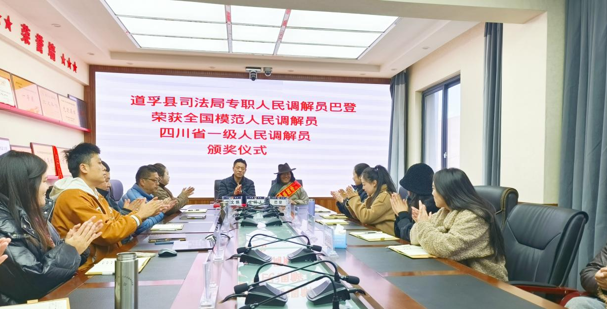 沒有轟轟烈烈的壯舉,有的只是潤(rùn)物細(xì)無聲般的為民服務(wù),巴登在日復(fù)一日的工作中默默無聞地守護(hù)著村村寨寨的和諧安寧,用自己的一言一行的為人民調(diào)解工作助力添彩。因?yàn)樵诨鶎诱{(diào)解工作中的突出表現(xiàn),2022年,巴登同志榮獲全國(guó)模范人民調(diào)解員,這也是道孚縣司法局推樹的第二個(gè)全國(guó)模范人民調(diào)解員。給人民調(diào)解員更寬廣的舞臺(tái),是道孚縣司法局立足本地實(shí)際發(fā)揚(yáng)“楓橋經(jīng)驗(yàn)“的有力嘗試。目前,道孚縣全國(guó)模范人民調(diào)解員數(shù)量為全州第一,有了第一個(gè)以個(gè)人命名的調(diào)解工作室,州級(jí)“楓橋式司法所”、省級(jí)法治宣傳教育基地、省級(jí)民主法治示范村等不斷涌現(xiàn)。新時(shí)代賦予新使命,新征程呼喚新作為。育人為基,奮進(jìn)發(fā)展,道孚縣司法局將繼續(xù)堅(jiān)持發(fā)展好新時(shí)代“楓橋經(jīng)驗(yàn)”,與時(shí)俱進(jìn)、守正創(chuàng)新,著力打造專業(yè)高效的“楓橋經(jīng)驗(yàn)”人民調(diào)解新模式,為推進(jìn)鄉(xiāng)村社會(huì)治理現(xiàn)代化、法治化,維護(hù)社會(huì)和諧發(fā)展注入新活力。(青麥 文/圖)