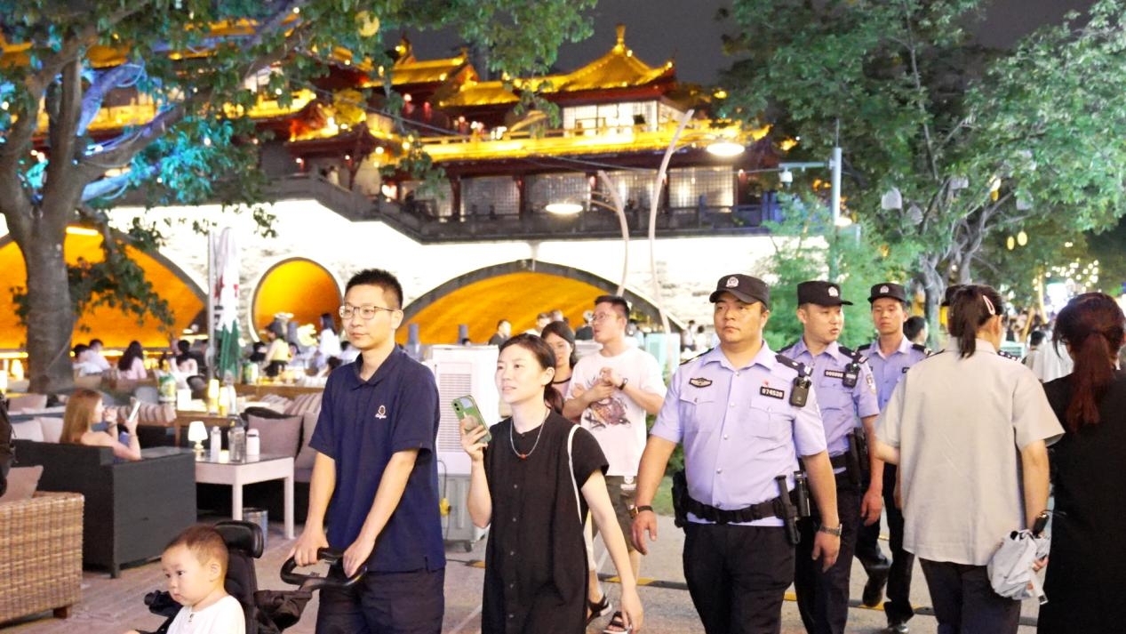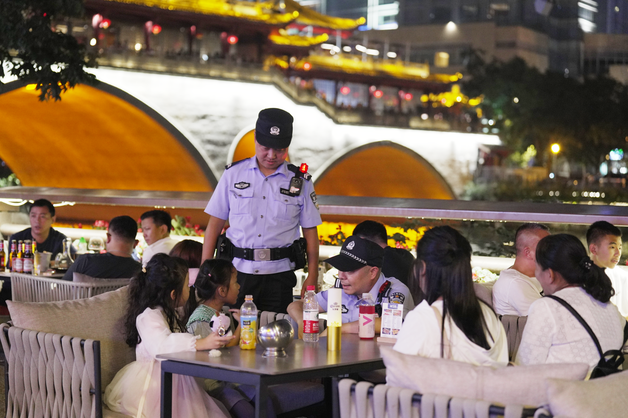 “無論是外地游客還是本地居民,很多人都喜歡在望江河邊吹吹風、泡泡吧?!苯z管路的“管段”民警段軍2009年從交警分局調(diào)到望江路派出所后,15年來一直負責老馬路社區(qū)的相關(guān)警務工作。段軍說,每逢節(jié)假日來絲管路放松的人就特別多,所上也會投入更多精力在“酒吧街”和臨近的望江公園、川大博物館等景點及區(qū)域。從節(jié)前的消防安全檢查、治安隱患排查,到節(jié)日期間的巡邏防控、安全守護,大家一絲不茍、全力堅守。