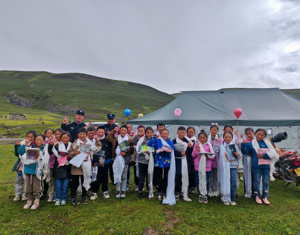 據(jù)拉巴介紹,德格縣岳巴鄉(xiāng)阿木拉小學(xué)是一個(gè)村小,孩子們讀到三年級(jí)以后就要轉(zhuǎn)到馬尼干戈中心校就讀。這一屆的27名學(xué)生剛完成期末考試,老師們想組織孩子們以“耍壩子”的形式慶祝在阿木拉小學(xué)生涯的“畢業(yè)”典禮。從小在大山里長大的拉巴聞?dòng)嵑?,主?dòng)表示參加當(dāng)日活動(dòng),并掏錢為孩子們精心準(zhǔn)備了短袖、水果等禮物,并還帶去了愛心人士捐贈(zèng)的書籍和衣服,和同事一起驅(qū)車60多公里趕到阿木拉夏季牧場,送去一份警察叔叔的祝福,見證孩子們不一樣的“畢業(yè)”典禮。