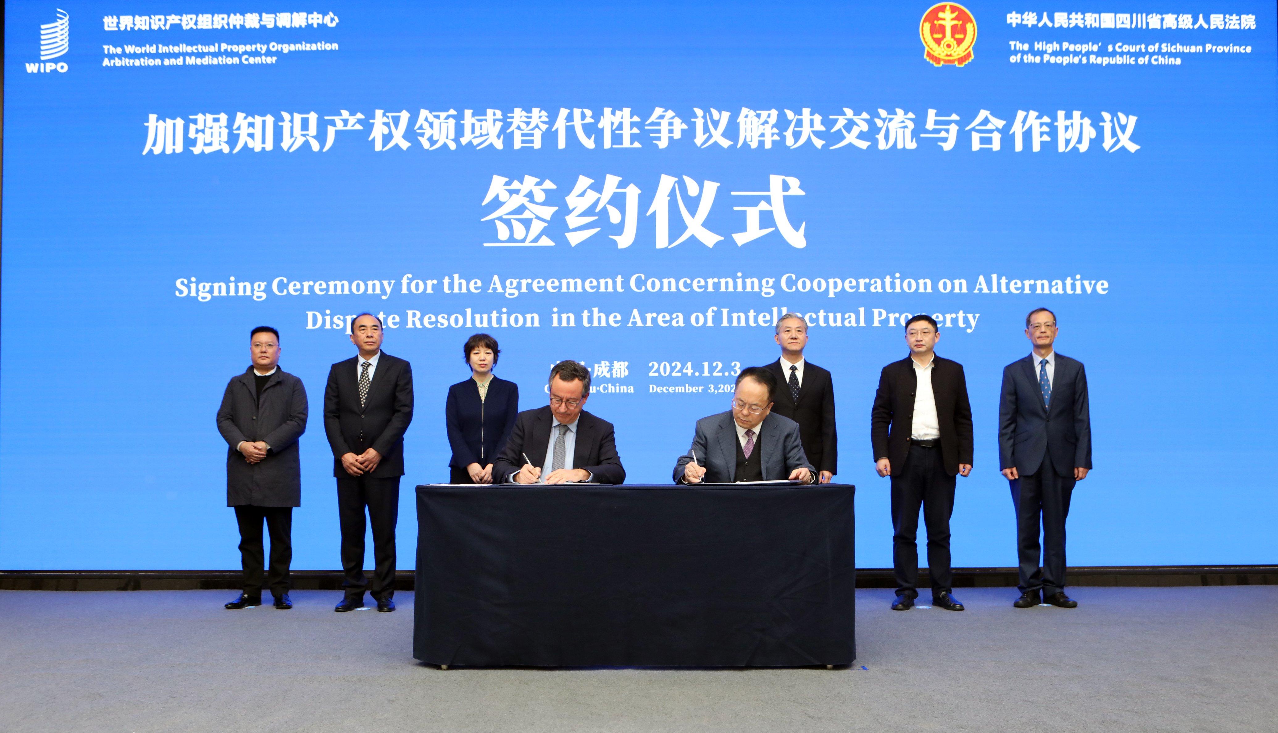 12月3日,四川高院黨組書記、院長王樹江與世界知識產(chǎn)權(quán)組織仲裁與調(diào)解中心司長伊格納西奧·德·卡斯特羅正式簽署《加強知識產(chǎn)權(quán)領域替代性爭議解決交流與合作協(xié)議》,這是四川高院為企業(yè)提供更加高效、便捷的糾紛化解機制的重要舉措?;诖?,在最高人民法院的支持下,四川高院與世界知識產(chǎn)權(quán)組織仲裁與調(diào)解中心進行了近一年的磋商,最終成功簽署合作協(xié)議。
