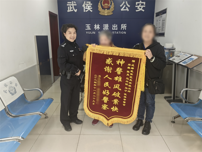 “感謝警察同志迅速把我母親的3萬元追回來,如果不是你們平時反詐宣傳做得好,我也不會第一時間報警,真的太感謝你們了!”12月1日,轄區(qū)周婆婆和女兒特意到玉林派出所為民警送來一面印有“神警雄風破案快 感謝人民好警察”的錦旗,表達對民警為其追回被騙現(xiàn)金的感謝之情。
