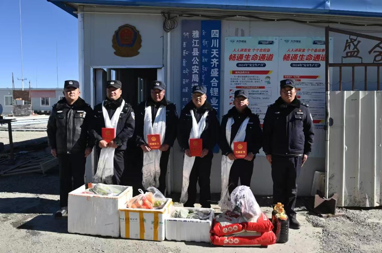 雪山下的忠誠,值得被禮遇。海拔4540米,這是四川省海拔最高警務(wù)站——甘孜州雅江縣公安局瓦多派出所措拉礦山警務(wù)站的高度。這既是海報(bào)的高度,更是忠誠的高度。近日,雅江縣公安局二級(jí)英模王偉副書記專程送獎(jiǎng)到措拉礦山警務(wù)室,帶去了縣局黨委的問候。視其常年在雪山之巔守護(hù)著亞洲最大單體鋰礦區(qū),縣公安局黨委專門為土登郎加等4名輔警記功授獎(jiǎng),并獻(xiàn)上哈達(dá)。