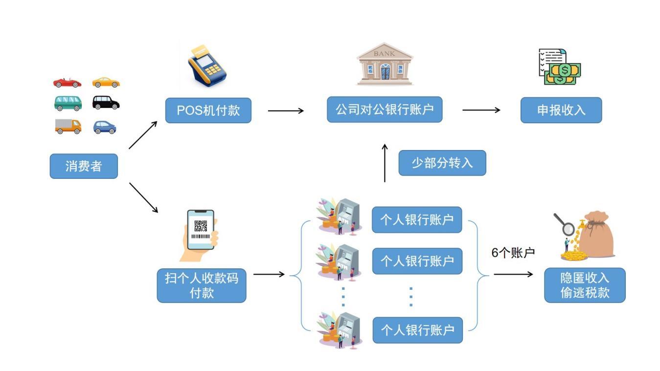 在證據面前,公司法人最終承認了違法事實。2021年至2022年,該加油站采取“雙軌制”收款模式,既使用綁定對公銀行賬戶的POS機,也同步啟用相關個人收款二維碼。其中,對公銀行賬戶收款按規(guī)定正常申報納稅,而個人收款碼收取的大部分加油款則被刻意“雪藏”,未進行申報納稅,直至2023年才停用個人收款二維碼。