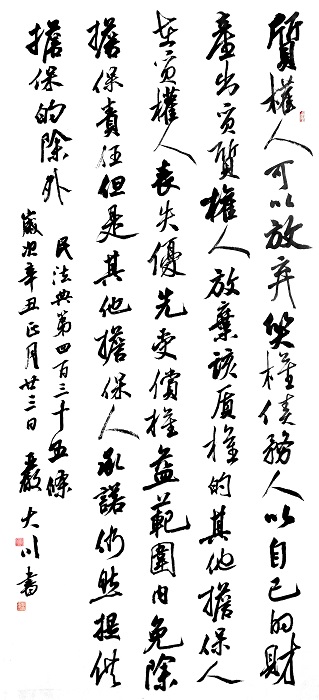 民法典第四百三十五條 質(zhì)權(quán)人可以放棄質(zhì)權(quán)。債務(wù)人以自己的財(cái)產(chǎn)出質(zhì),質(zhì)權(quán)人放棄該質(zhì)權(quán)的,其他擔(dān)保人在質(zhì)權(quán)人喪失優(yōu)先受償權(quán)益的范圍內(nèi)免除擔(dān)保責(zé)任,但是其他擔(dān)保人承諾仍然提供擔(dān)保的除外。