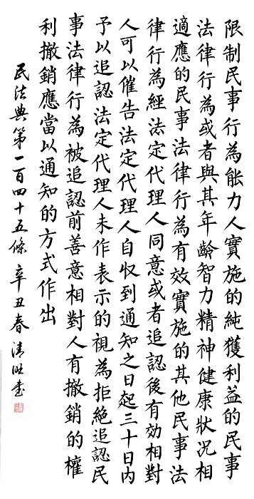 “書·法”活動以書寫《中華人民共和國民法典》法條開筆,未來將對準(zhǔn)更多的法律。