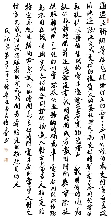 “書·法”活動(dòng)以書寫《中華人民共和國民法典》法條開筆,未來將對準(zhǔn)更多的法律。