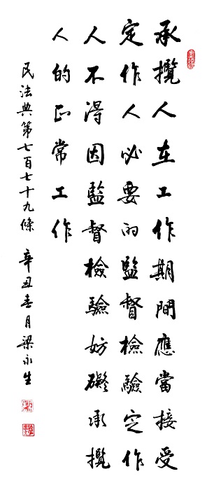 民法典第七百七十九條 承攬人在工作期間,應(yīng)當(dāng)接受定作人必要的監(jiān)督檢驗(yàn)。定作人不得因監(jiān)督檢驗(yàn)妨礙承攬人的正常工作。