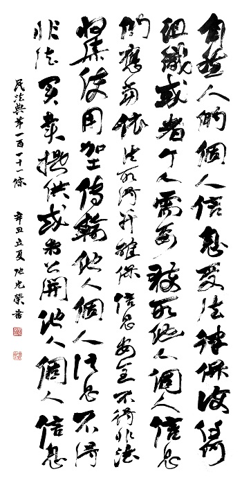 “書·法”活動(dòng)以書寫《中華人民共和國民法典》法條開筆,未來將對準(zhǔn)更多的法律。