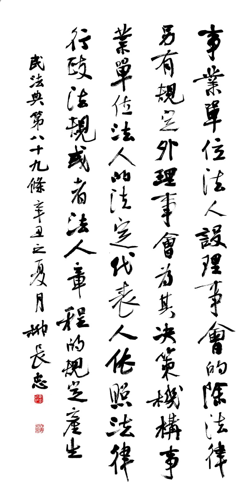 “書·法”活動(dòng)以書寫《中華人民共和國民法典》法條開筆,未來將對準(zhǔn)更多的法律。
