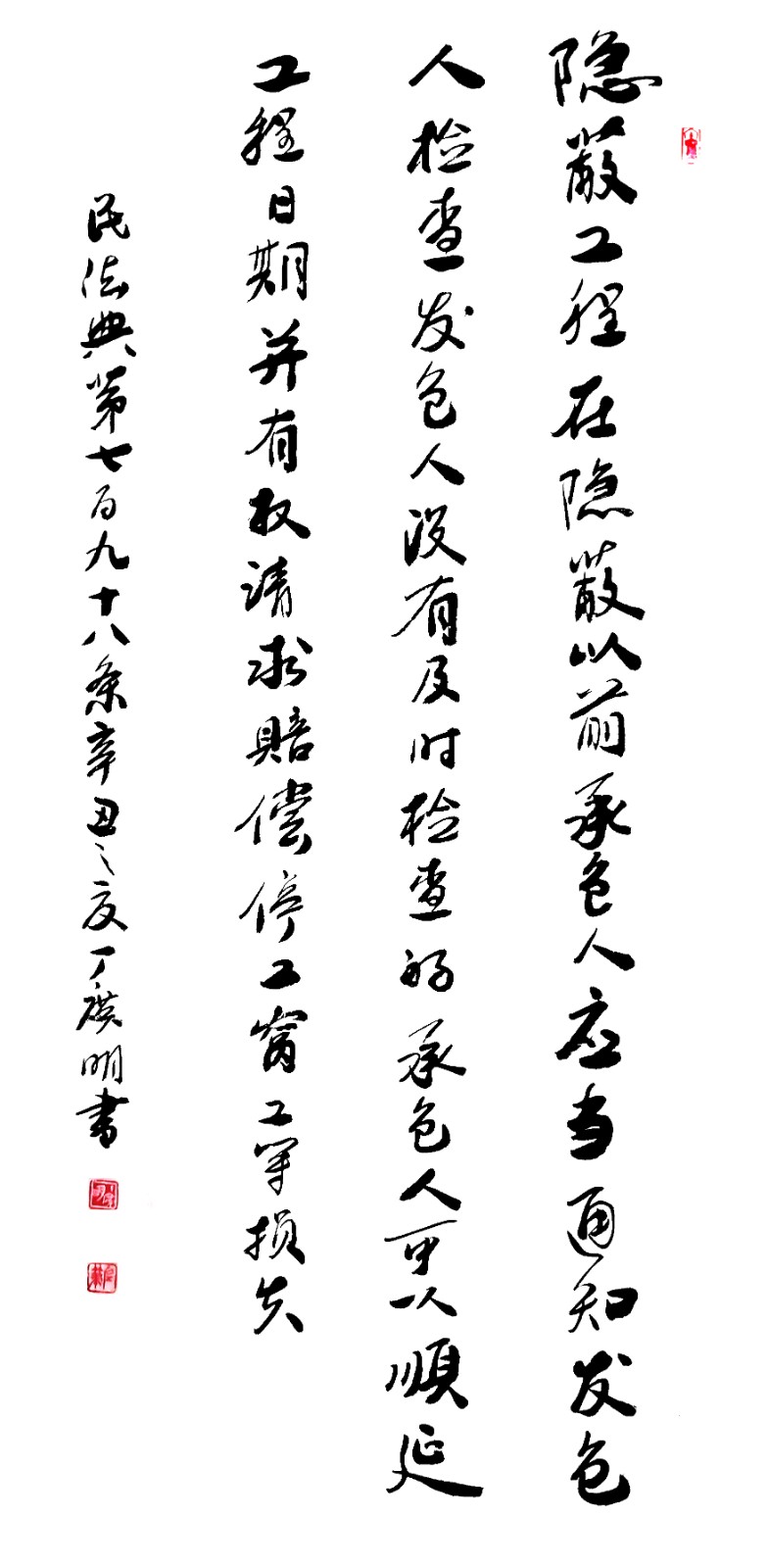 民法典第七百九十八條 隱蔽工程在隱蔽以前,承包人應(yīng)當(dāng)通知發(fā)包人檢查。發(fā)包人沒有及時檢查的,承包人可以順延工程日期,并有權(quán)請求賠償停工、窩工等損失。