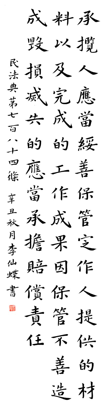 民法典第七百八十四條 承攬人應(yīng)當妥善保管定作人提供的材料以及完成的工作成果,因保管不善造成毀損、滅失的,應(yīng)當承擔賠償責任。