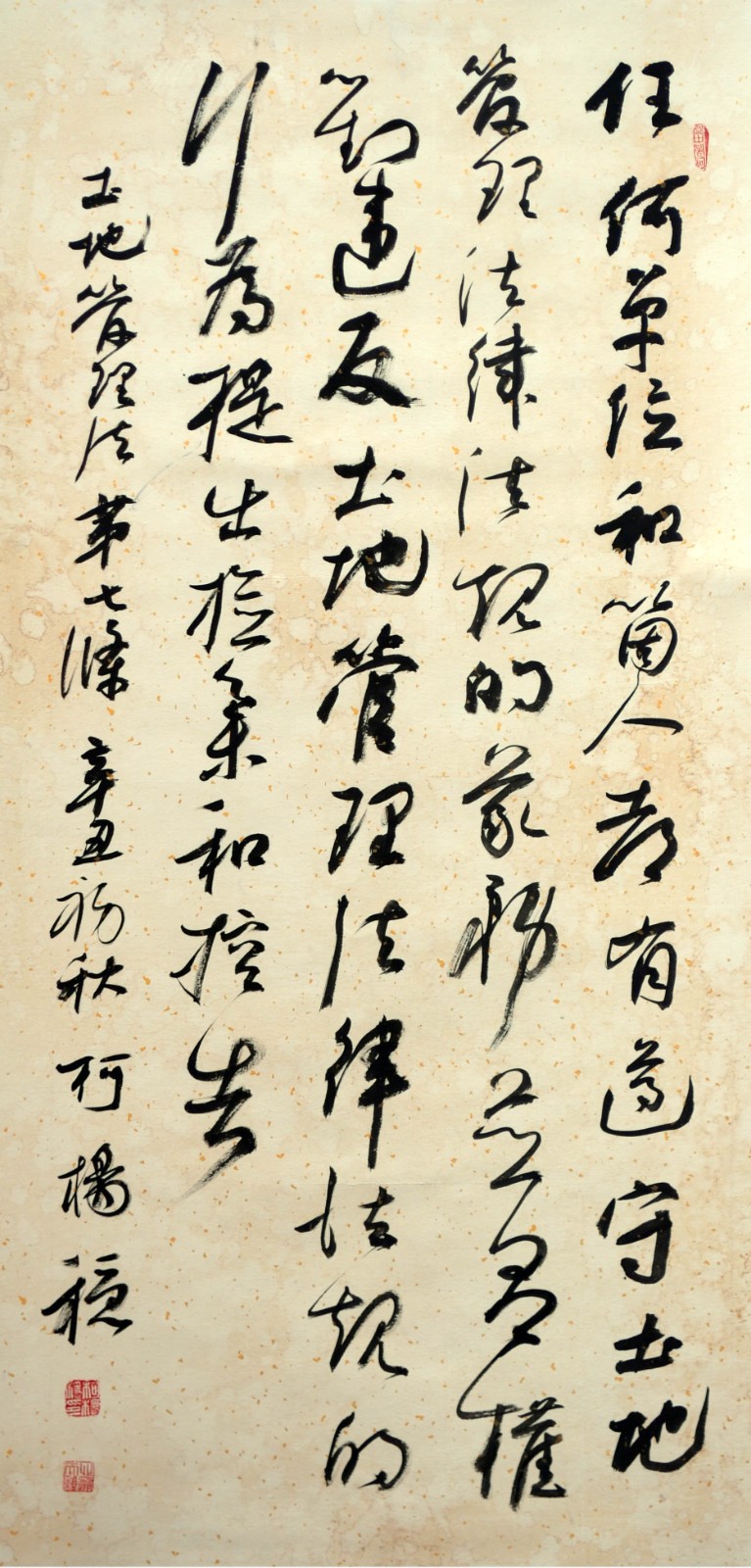 繼1600余位書法家參與書寫《中華人民共和國(guó)民法典》全部1260條法條之后,法治日?qǐng)?bào)社聯(lián)合自然資源部法規(guī)司、自然資源部書畫研究會(huì)和北京昌平書法家協(xié)會(huì),將筆端對(duì)準(zhǔn)土地管理“一法一條例”,即《中華人民共和國(guó)土地管理法》和《中華人民共和國(guó)土地管理法實(shí)施條例》。