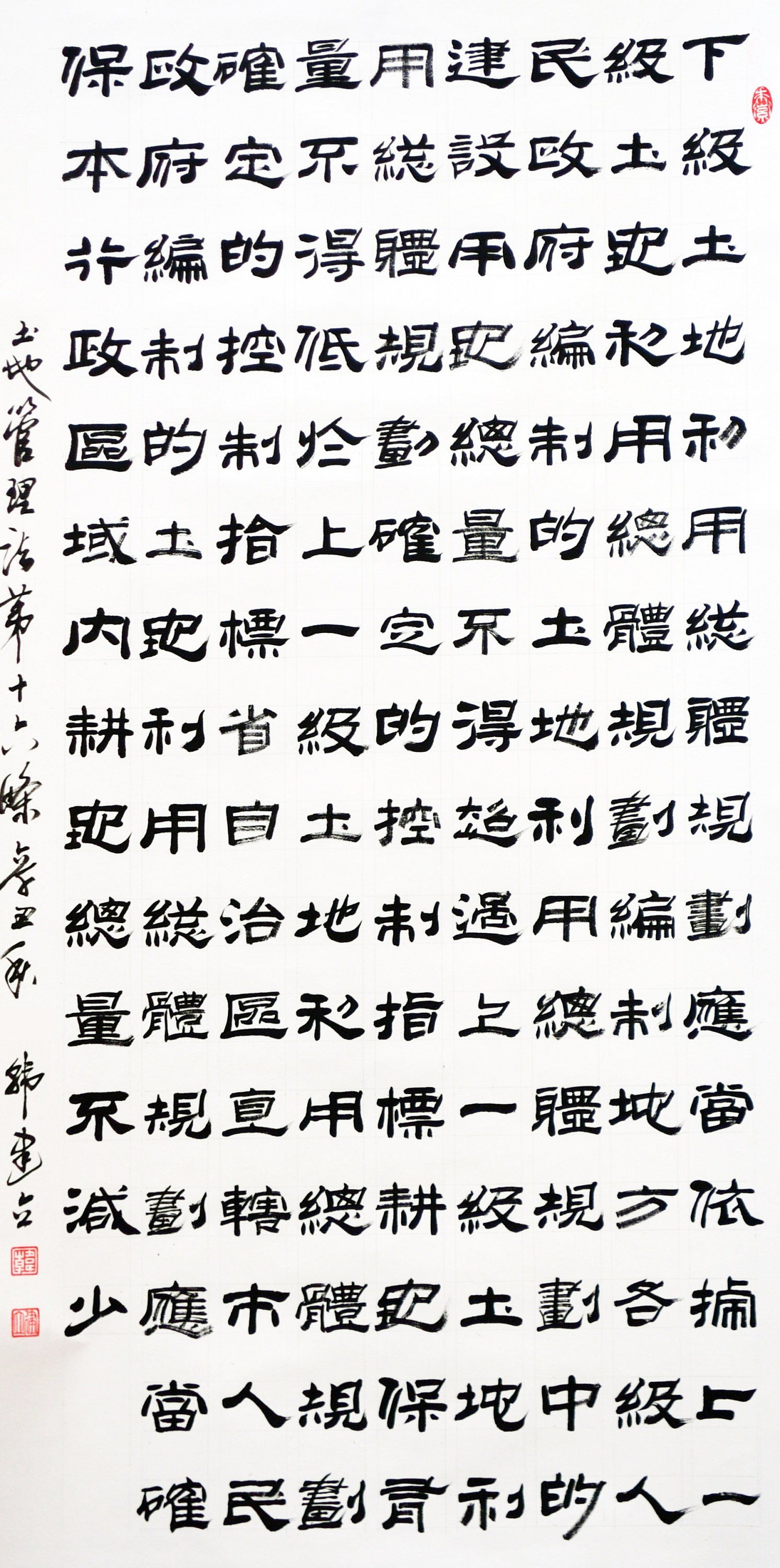 繼1600余位書法家參與書寫《中華人民共和國民法典》全部1260條法條之后,法治日報(bào)社聯(lián)合自然資源部法規(guī)司、自然資源部書畫研究會(huì)和北京昌平書法家協(xié)會(huì),將筆端對準(zhǔn)土地管理“一法一條例”,即《中華人民共和國土地管理法》和《中華人民共和國土地管理法實(shí)施條例》。