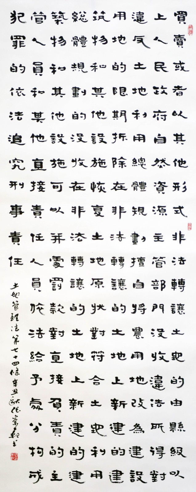 繼1600余位書法家參與書寫《中華人民共和國民法典》全部1260條法條之后,法治日報(bào)社聯(lián)合自然資源部法規(guī)司、自然資源部書畫研究會(huì)和北京昌平書法家協(xié)會(huì),將筆端對準(zhǔn)土地管理“一法一條例”,即《中華人民共和國土地管理法》和《中華人民共和國土地管理法實(shí)施條例》。