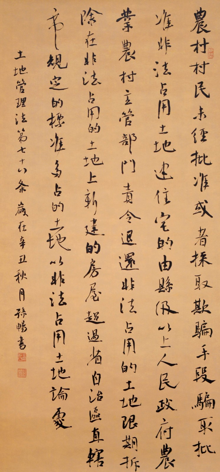 繼1600余位書法家參與書寫《中華人民共和國民法典》全部1260條法條之后,法治日報(bào)社聯(lián)合自然資源部法規(guī)司、自然資源部書畫研究會(huì)和北京昌平書法家協(xié)會(huì),將筆端對(duì)準(zhǔn)土地管理“一法一條例”,即《中華人民共和國土地管理法》和《中華人民共和國土地管理法實(shí)施條例》。